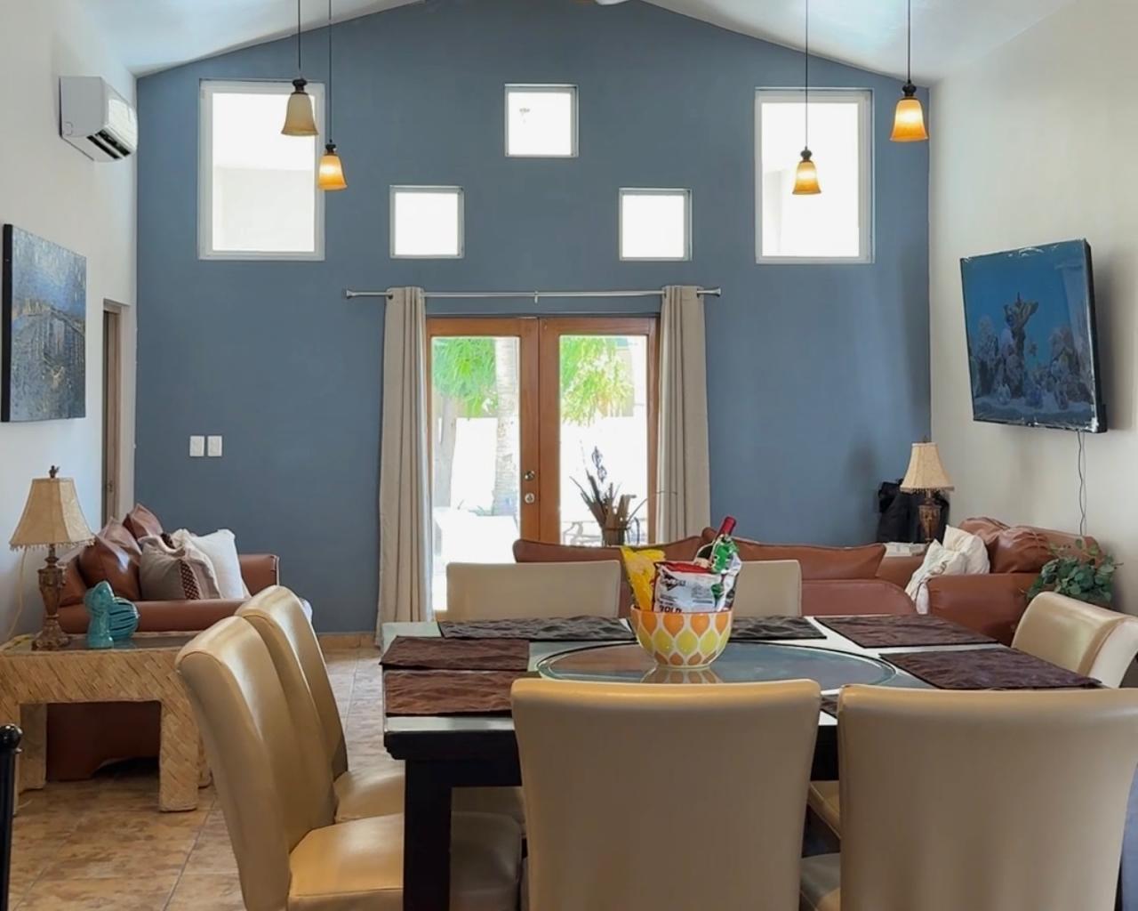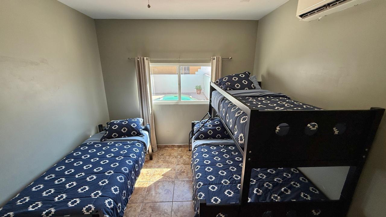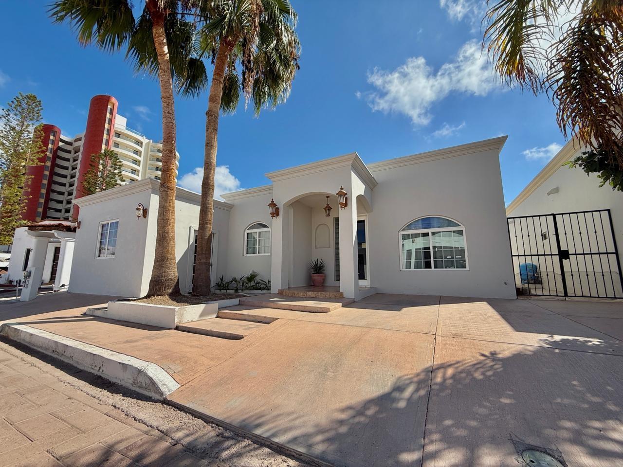 Discover this spectacular single-level home in Costa del Mar, San Carlos Nuevo Guaymas, where tranquility and luxury blend perfectly. Located in an exclusive, gated beachfront community with controlled access, this property offers a unique living experience, surrounded by green areas, a pool, sports courts, and cobblestone streets with underground utilities. The main house has three spacious bedrooms, while a separate apartment offers a fourth bedroom, plus its own kitchen and social area, ideal for guests or generating additional income. Enjoy a spacious patio with a pool, perfect for gatherings and relaxation. A private walkway leads directly to the beach, just steps from the house. Its location is unbeatable, close to the best bars, restaurants, and the most beautiful beach in San Carlos, where you can enjoy unforgettable sunsets. A unique opportunity to live or vacation in a coastal paradise! 🌅✨