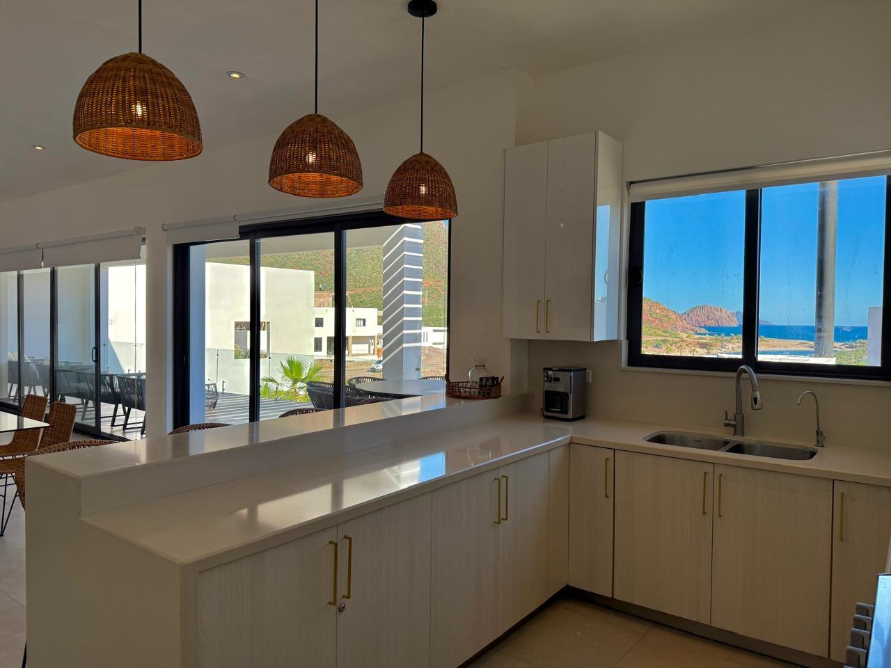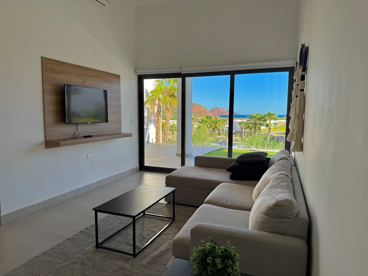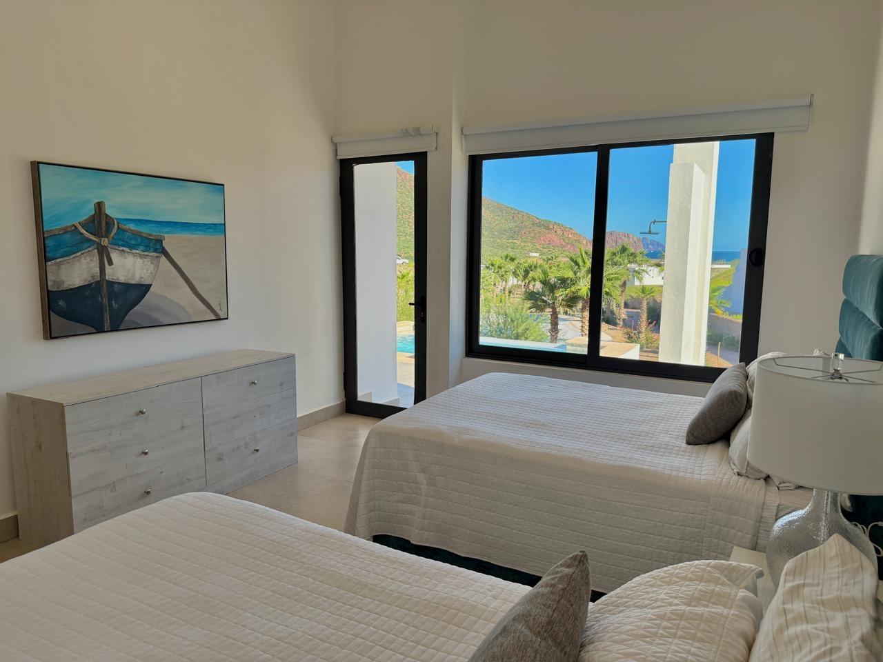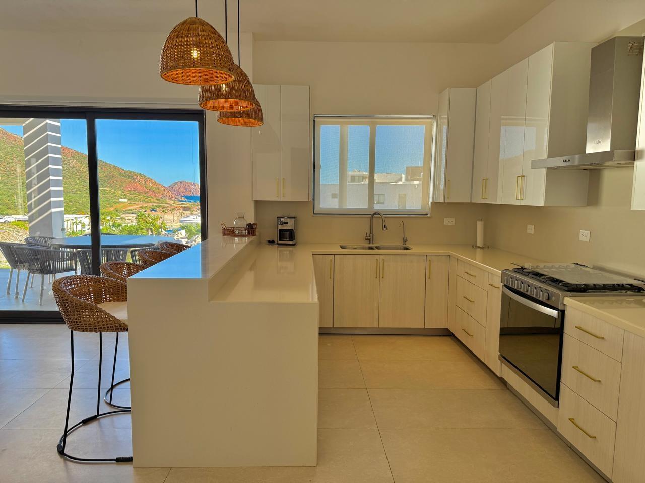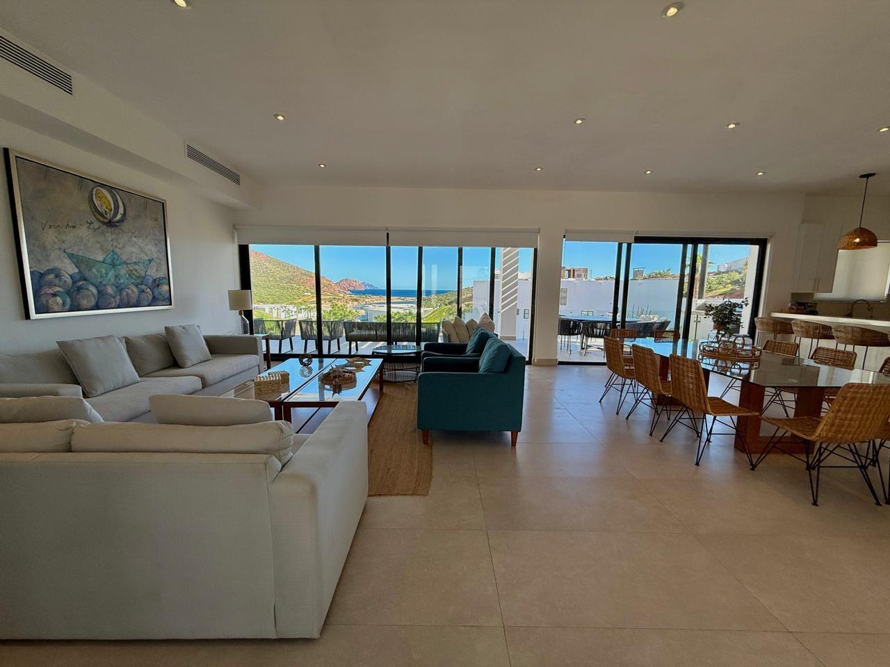 Located within the Belo Horizonte residential community, an exclusive area with controlled access, 24/7 security, and privileged views of the sea and Cerro Tetakawi, this property offers spaciousness, functionality, and a high-value environment. The house is furnished and equipped, with a layout designed for comfort and entertaining. Layout and features: - Swimming pool. • 4 bedrooms (1 on the ground floor and 3 on the upper floor). • 5 full bathrooms and 1 half bathroom. • Living and dining room in the social area with direct access to a terrace overlooking the sea. • Kitchen equipped with granite countertops. • Family room on the ground floor. • Entertainment area or second family room on the upper floor. • Laundry room with washer and dryer. • Maid's quarters with full bathroom. • Upper-level terrace with dining area, barbecue area, and outdoor living area with panoramic sea views. • Ground-level terrace with swimming pool. • Pump room.