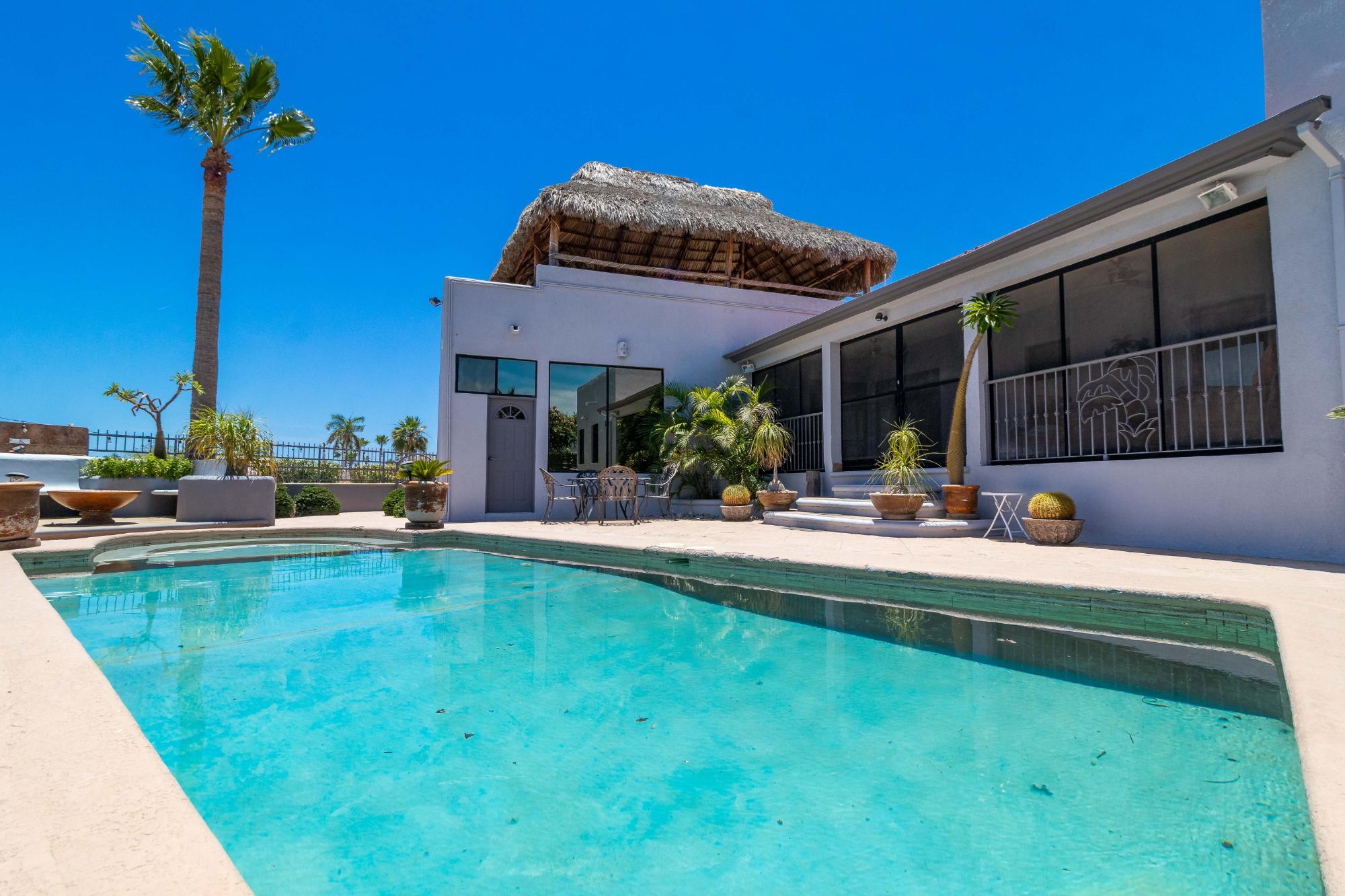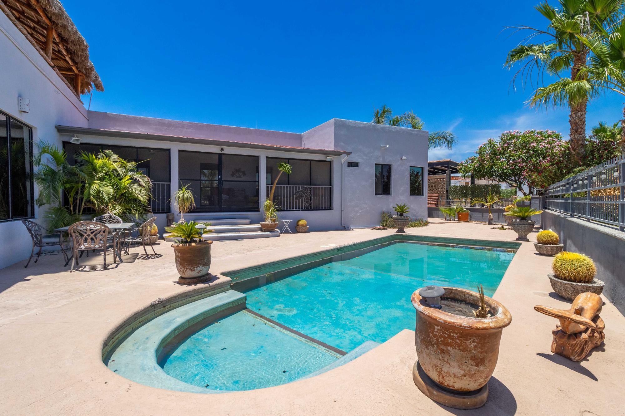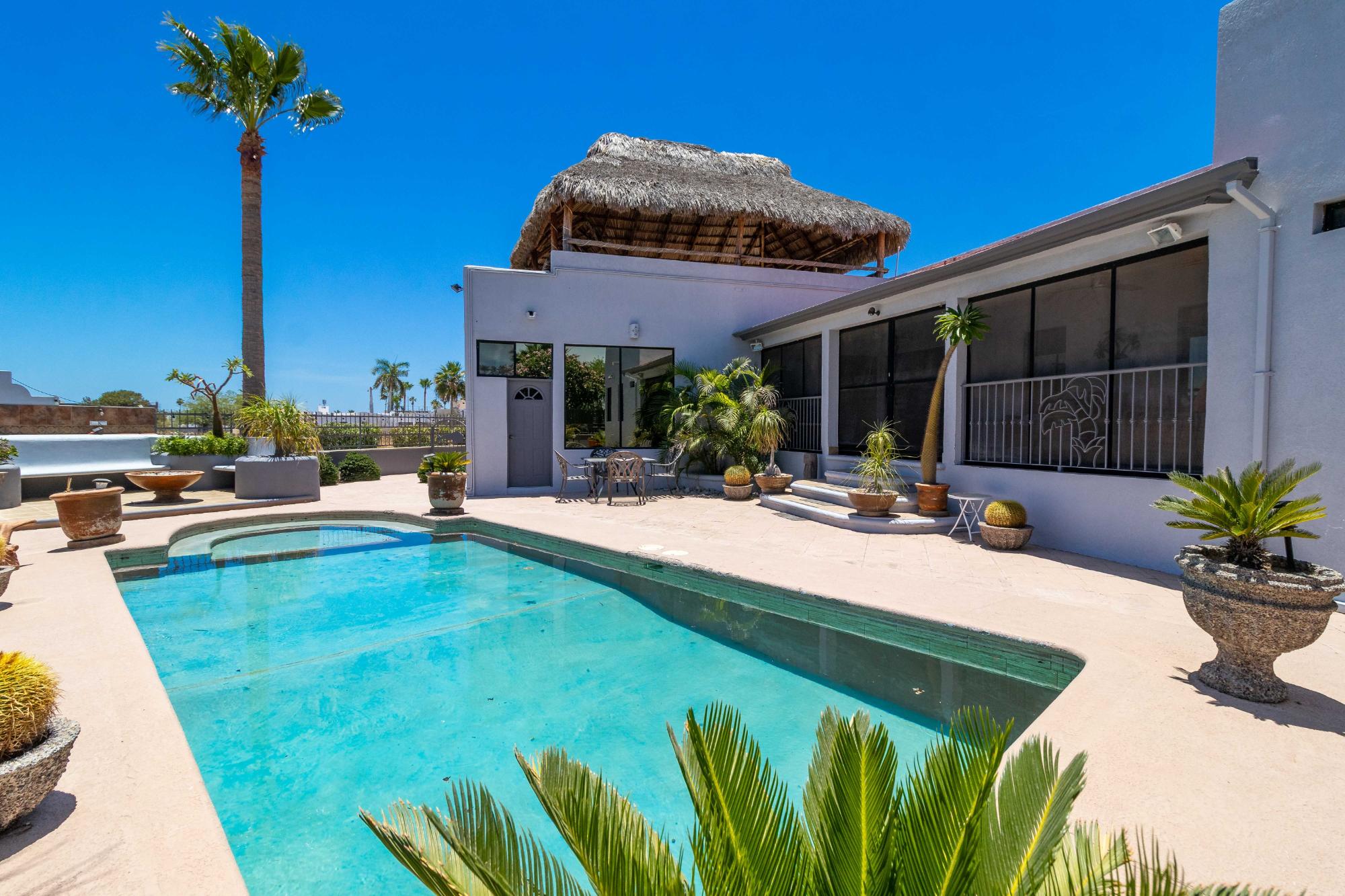 Welcome to one of the most well-maintained homes in San Carlos, located in the gated Country Club community, a highly desirable neighborhood for personal living or smart investment. Property Highlights: 4 Bedrooms | 4 Bathrooms Saltwater Pool Rooftop Palapa with Ocean Views 2 Car Garage Directly on Golf Course This single level home offers an open concept layout with quality finishes. All bedrooms and living spaces include minisplit AC/heater units for comfort year-round. Upgrades include: RO drinking water Water softener Extra water storage Screened-in back patio Fenced Yard Newly redone roof This home also has strong rental income potential, with a proven history of success as both a short-term vacation rental and long-term yearly rental. Its combination of location, quality, and amenities makes it a turnkey investment opportunity in one of San Carlos’ most established communities.