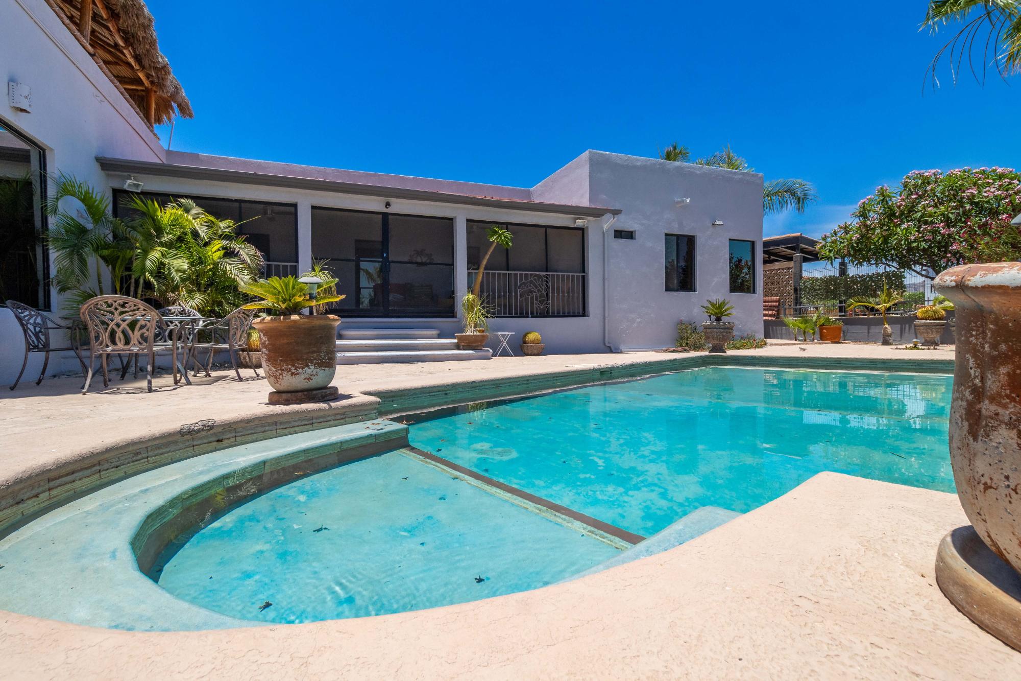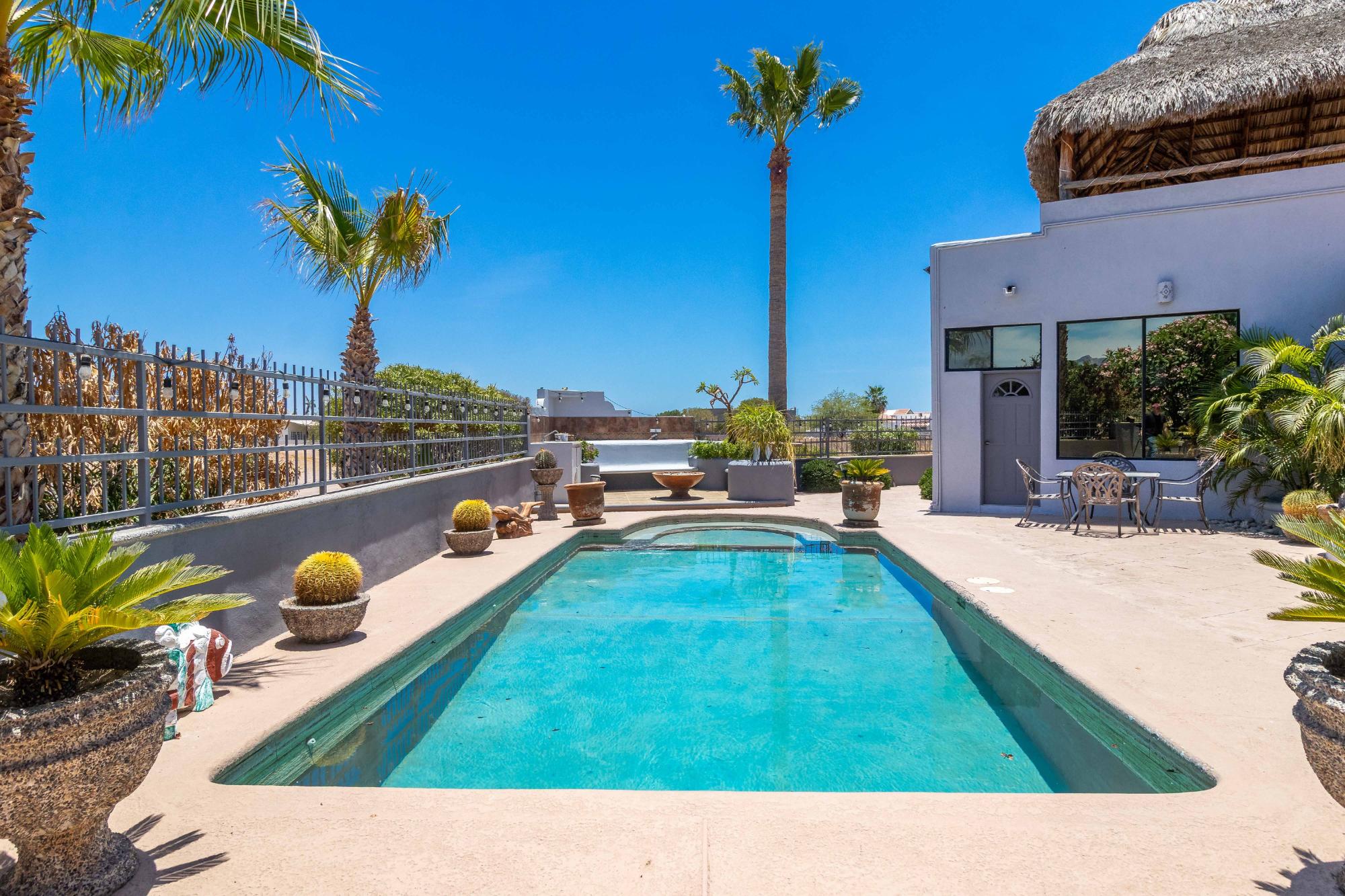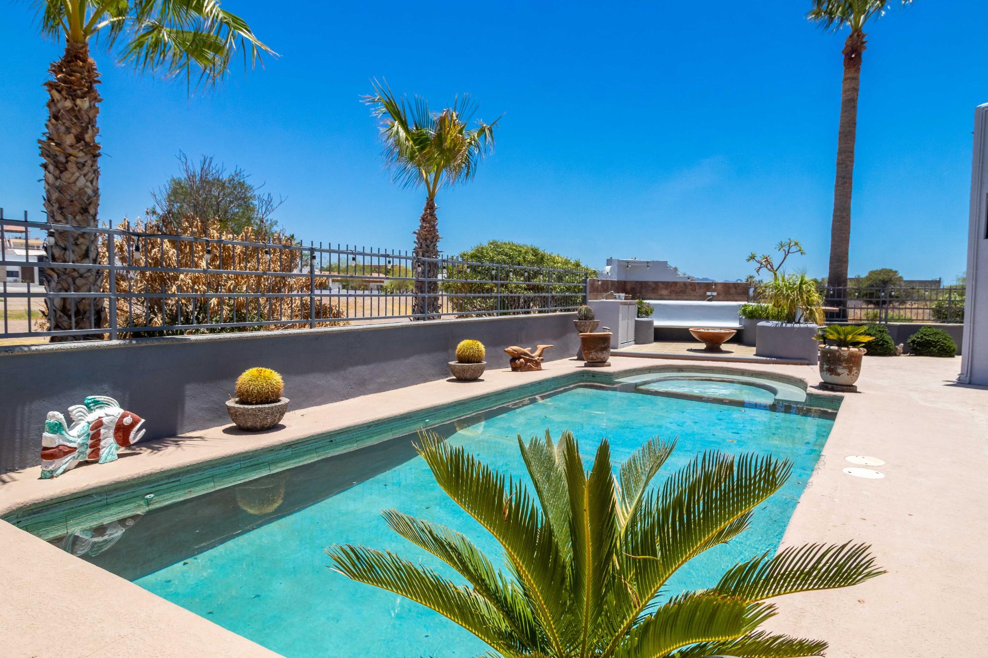 Welcome to one of the most well-maintained homes in San Carlos, located in the gated Country Club community, a highly desirable neighborhood for personal living or smart investment. Property Highlights: 4 Bedrooms | 4 Bathrooms Saltwater Pool Rooftop Palapa with Ocean Views 2 Car Garage Directly on Golf Course This single level home offers an open concept layout with quality finishes. All bedrooms and living spaces include minisplit AC/heater units for comfort year-round. Upgrades include: RO drinking water Water softener Extra water storage Screened-in back patio Fenced Yard Newly redone roof This home also has strong rental income potential, with a proven history of success as both a short-term vacation rental and long-term yearly rental. Its combination of location, quality, and amenities makes it a turnkey investment opportunity in one of San Carlos’ most established communities.