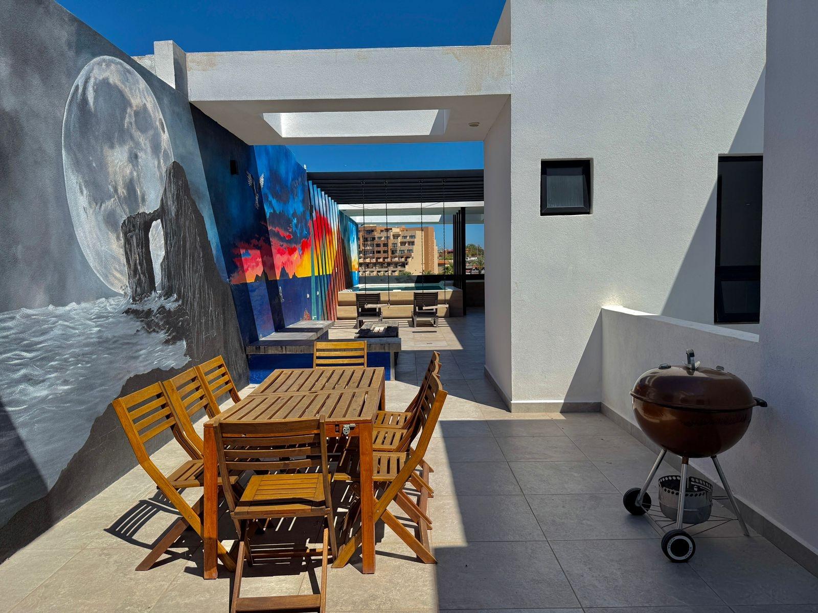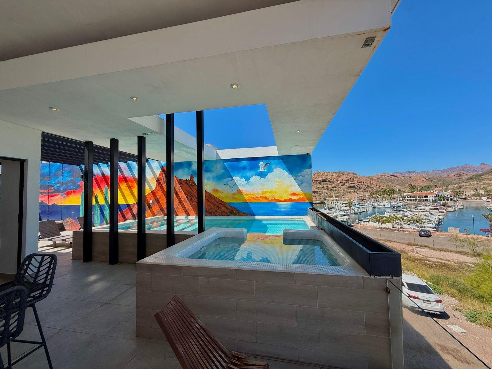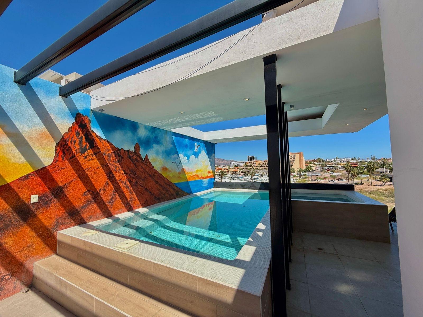 Casa del Muelle is a vacation property designed to enjoy the best of coastal living: open views of the pier, a private pool, a barbecue area, and spaces designed for sharing memorable moments. Located in the heart of San Carlos, minutes from its beaches and water activities, this residence combines privacy, spaciousness, and a privileged view of the sea and marina. It features three bedrooms, each with its own bathroom, a private living area an open social area with a fully equipped kitchen, dining room, and living space, a separate bedroom with a full bathroom, a panoramic terrace with views of the sea and marina, a private pool. Each bedroom has its own bathroom, offering comfort and privacy for all guests. What makes Casa del Muelle unique is its direct view of the pier, a terrace perfect for sunsets and starry nights, ample spaces for group gatherings, and a strategic location near beaches, restaurants, and the marina. It's ideal for large families or groups of friends.