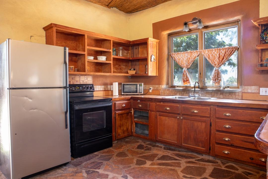 Comfortable beach living in straw bale constructed 3 bedroom/2 bath home. Open floor plan, lots of natural light and unlimited potential. Includes 2,000 sq meters of land, which make it ideal to expand and create. Mature landscaping and patio space create a lovely outdoor space.