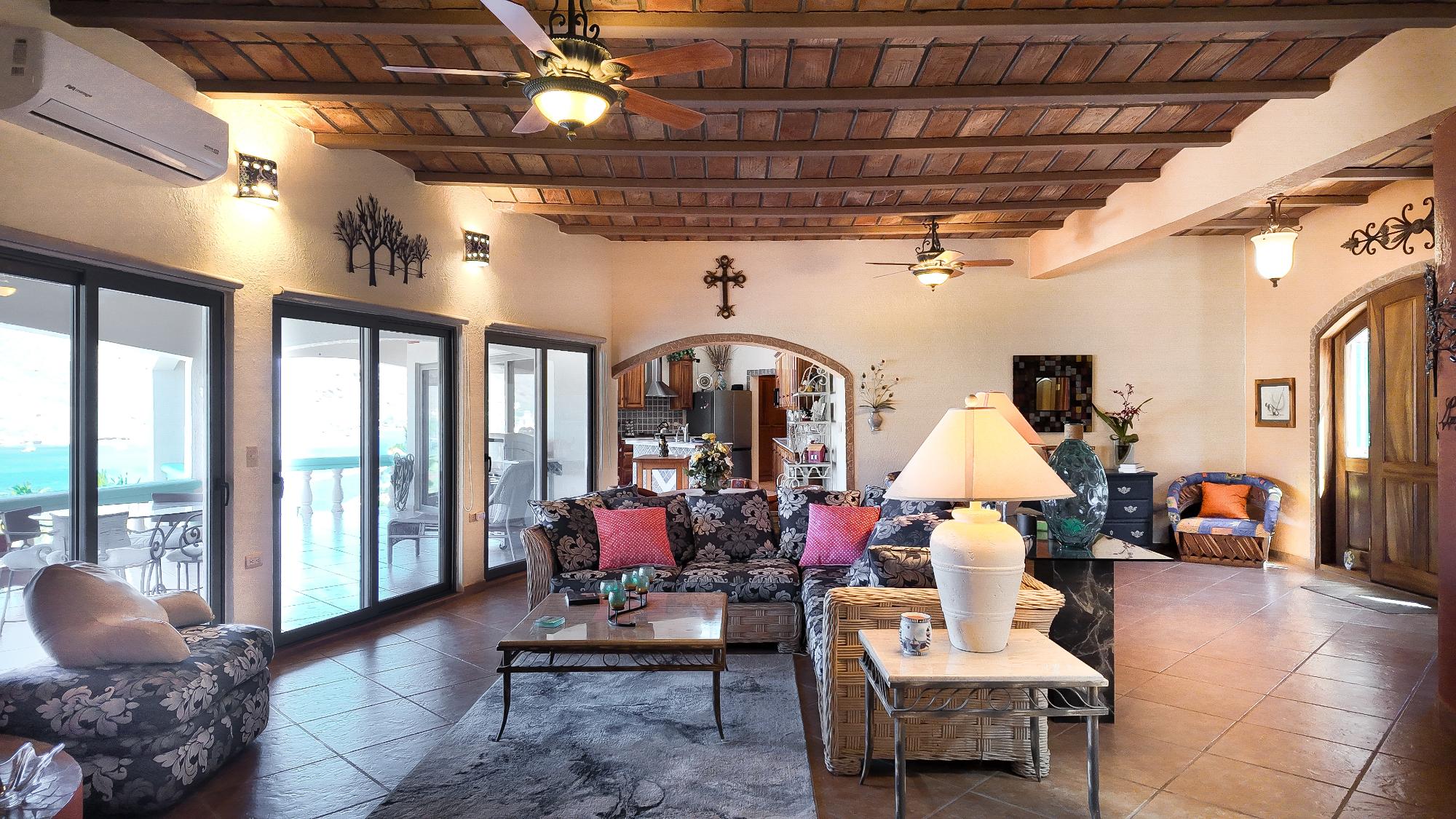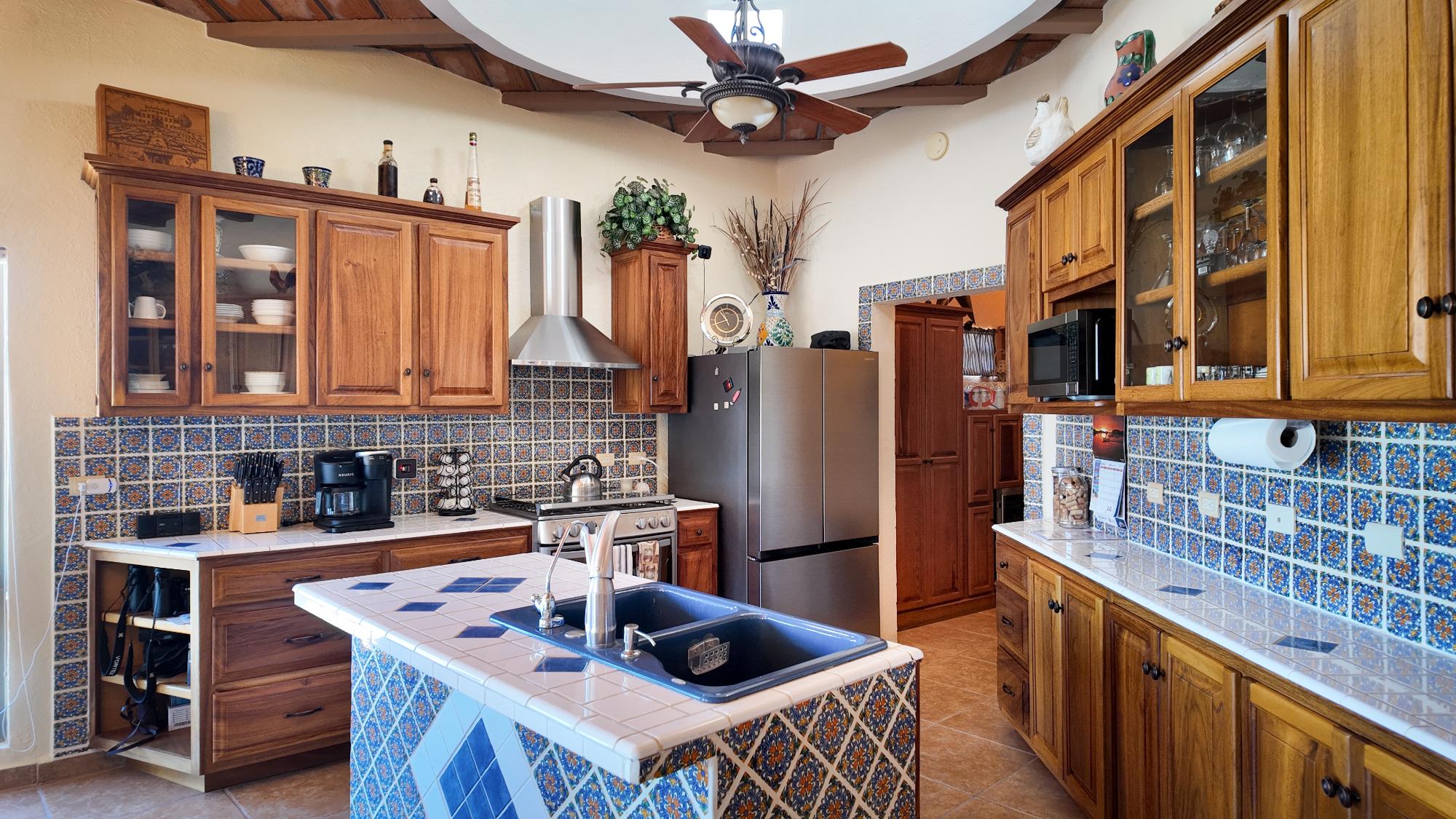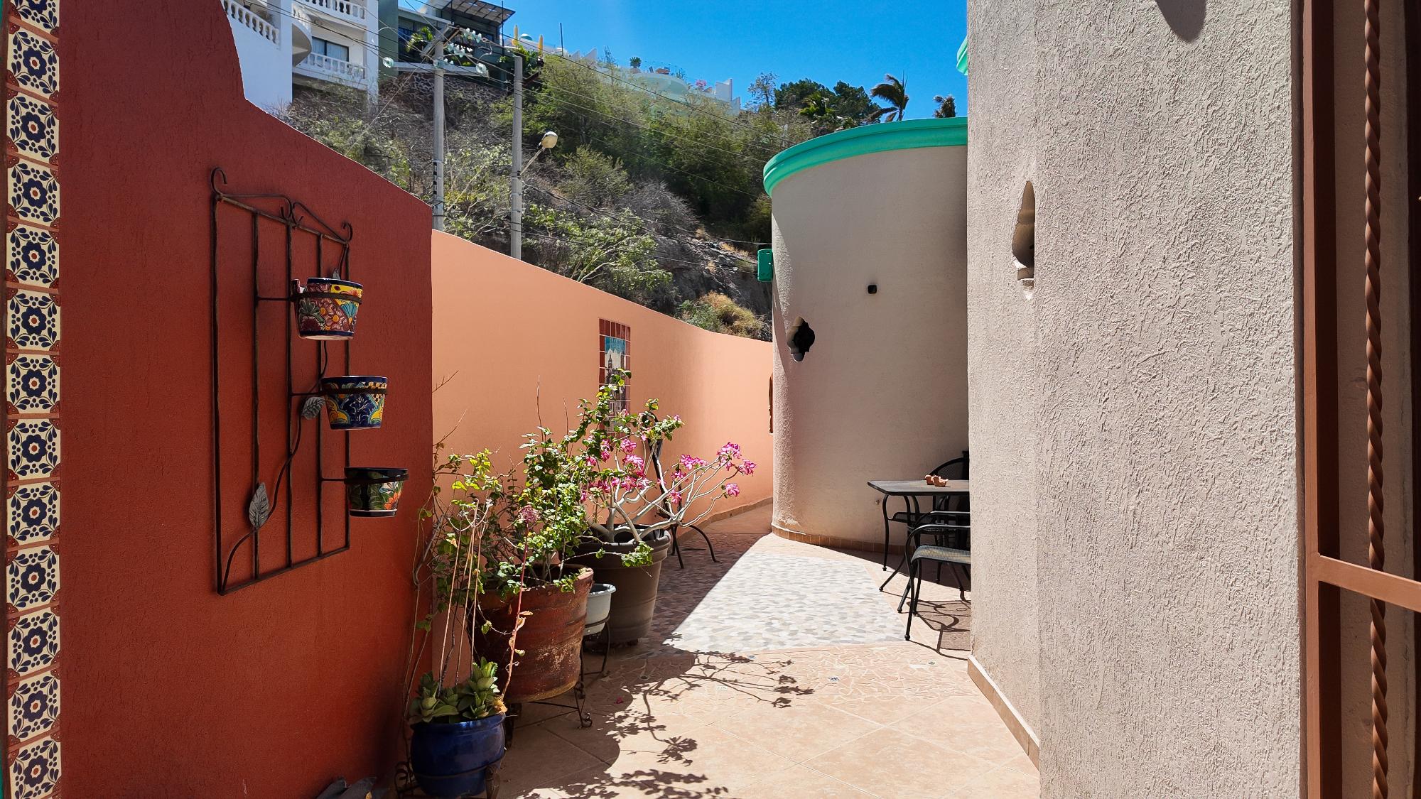 Enter through a charming courtyard into a home designed to capture the beauty of its surroundings, featuring spacious wraparound deck perfect for soaking in breathtaking ocean views or enjoying a short walk to a private beach for morning swims. This well designed residence offers 2 bedrooms with en-suite bath plus a dedicated office, ideal for full-time living or vacation gateway. The open-concept kitchen is the heart of the home, showcasing a large center island, custom blue and white Talavera tile countertops, rich parota wood cabinetry, and all-new appliances – perfect for entertaining while enjoying panoramic views. The lower level features a fully equipped efficiency apartment, providing privacy for guests or excellent rental potential, along with additional storage space. Situated on an oversized lot, this property includes an additional lot, guaranteeing protected, unobstructed ocean views for for a lifetime – a rare and valuable opportunity in today’s market.