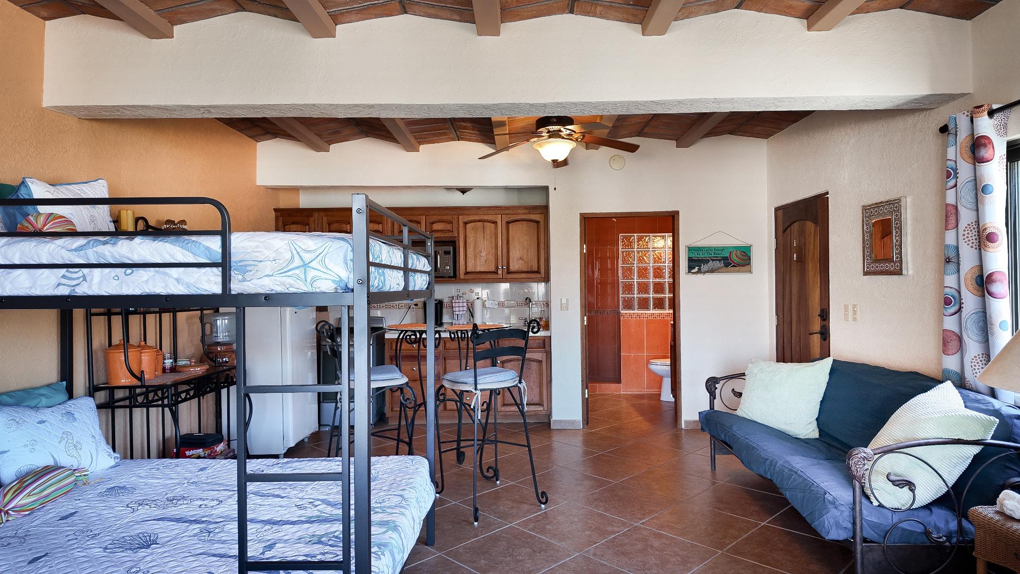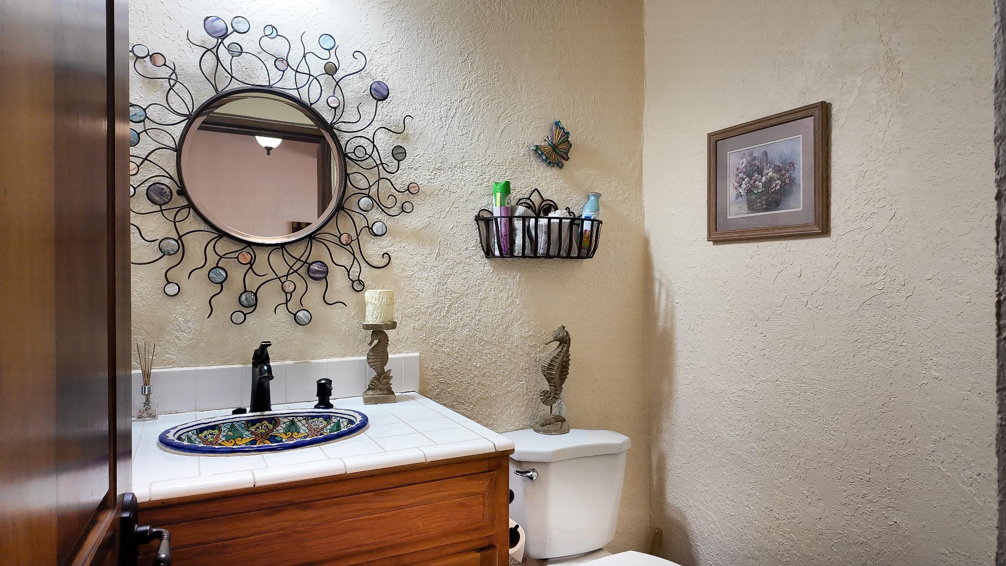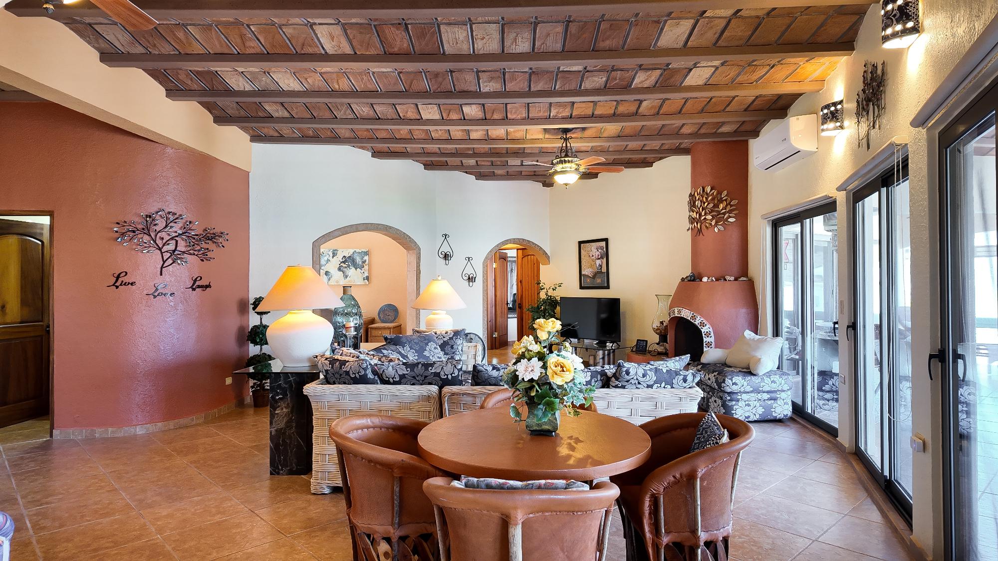 Enter through a charming courtyard into a home designed to capture the beauty of its surroundings, featuring spacious wraparound deck perfect for soaking in breathtaking ocean views or enjoying a short walk to a private beach for morning swims. This well designed residence offers 2 bedrooms with en-suite bath plus a dedicated office, ideal for full-time living or vacation gateway. The open-concept kitchen is the heart of the home, showcasing a large center island, custom blue and white Talavera tile countertops, rich parota wood cabinetry, and all-new appliances – perfect for entertaining while enjoying panoramic views. The lower level features a fully equipped efficiency apartment, providing privacy for guests or excellent rental potential, along with additional storage space. Situated on an oversized lot, this property includes an additional lot, guaranteeing protected, unobstructed ocean views for for a lifetime – a rare and valuable opportunity in today’s market.